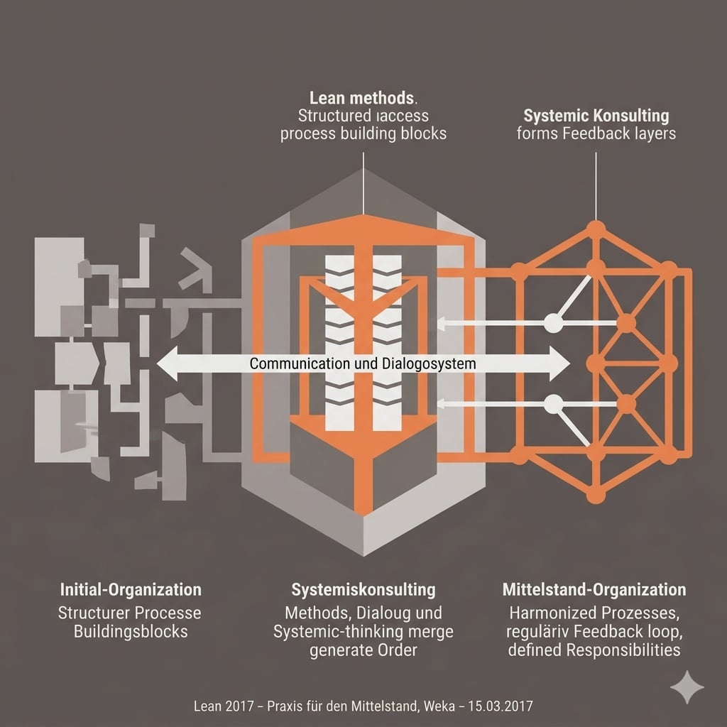 In diesem Beispiel wird sehr schön beschrieben, wie Unternehmen Grundlagen für eine stabile Veränderung schaffen. Neben den klassischen Lean-Ansätzen sind die Methoden und Vorgehensweisen aus der Kommunikations- und Dialogtechnik, der systemischen Beratung und aus den Arbeitssystemen wichtige Bestandteile für eine stabile Veränderung.