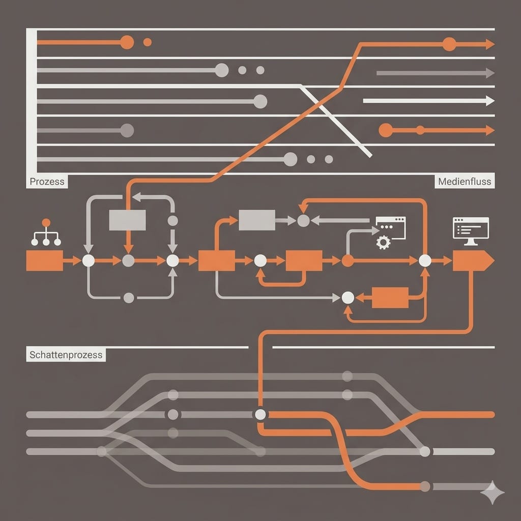 Die Visualisierung von Prozess- und Medienströmen wird hier in einem Hybrid zwischen Schwimmbahnen und Wertstrom aufgezeigt. Anhand von konkreten Daten und Fakten eines früheren Projektes zeige ich, welche Potenziale in der Verwendung ähnlicher IT-Systeme/Medien und in Schattenpersonal schlummern.